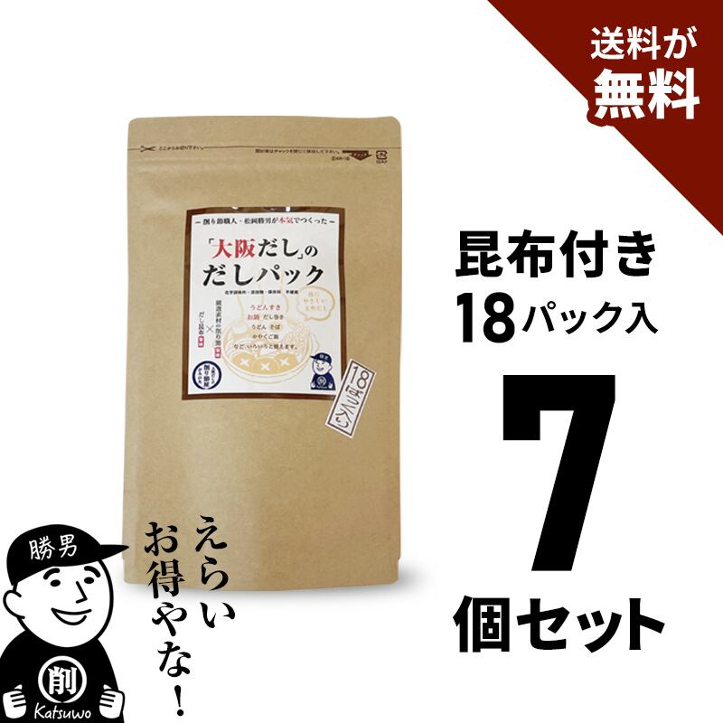 クラフト容器 無添加 だしパック お得用(18パック入)だし昆布付き 7個セット ★送料無料★