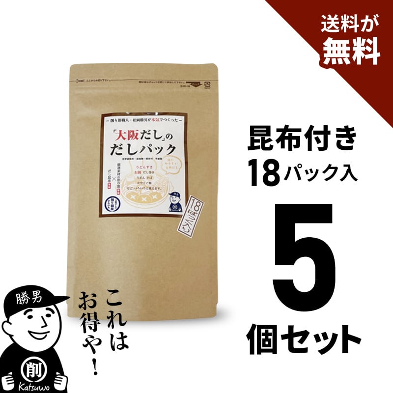 クラフト容器 無添加 だしパック お得用(18パック入)だし昆布付き 5個セット ★送料無料★